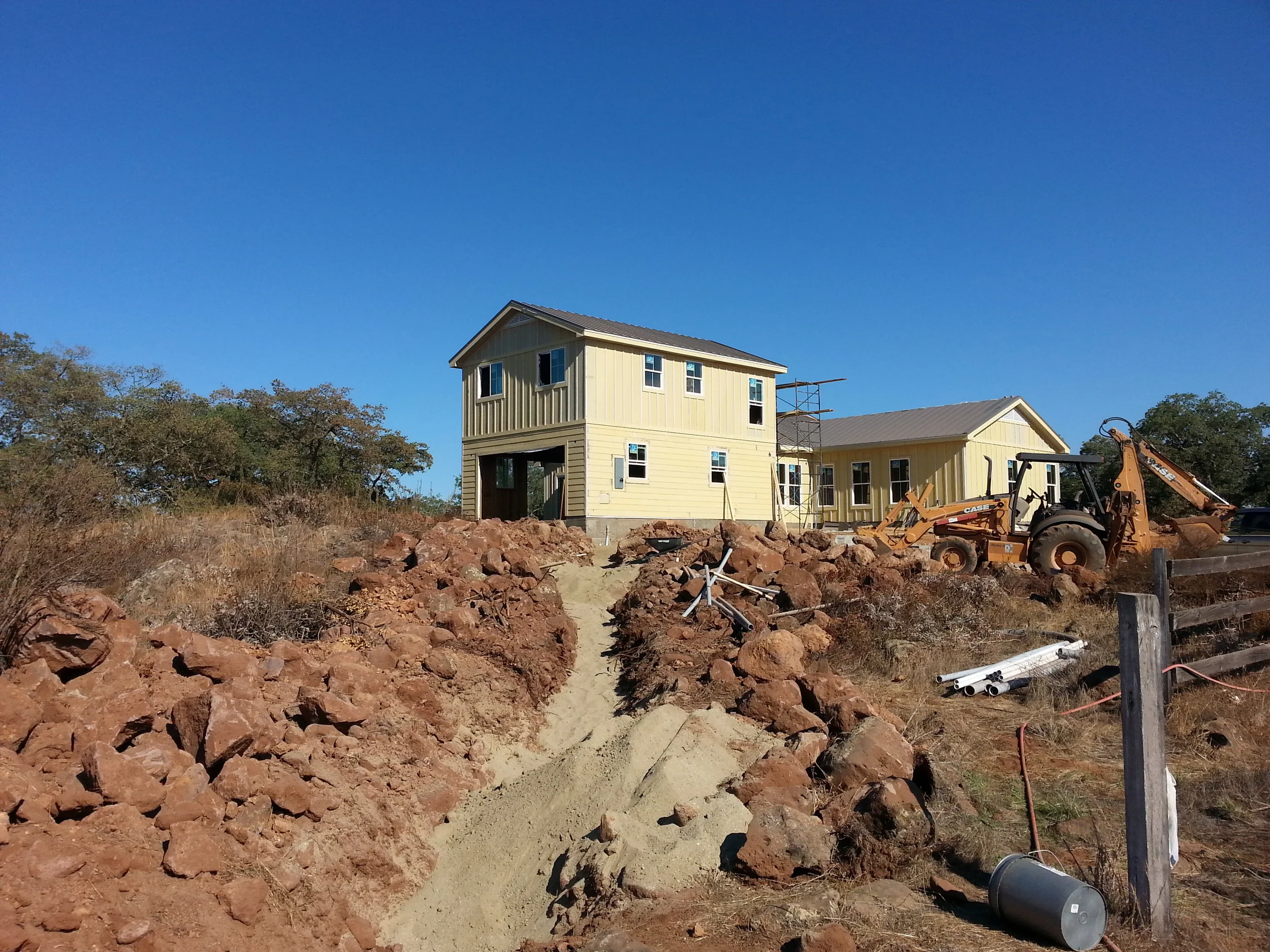 yesterday I was able to make some more progress back filling the trench that holds the conduit for our electric service. There was a big rain and thunderstorm last night and I spent the time between children crying worrying about the open windows and unfinished roof. when I got up in the morning the worry seemed slightly ridiculous (something about the middle of the night and hearing the storm...). Mike Mark is up at the house finishing the plumbing and the other jobs today. I look forward to seeing a clean and finished house this afternoon. I am not, however, holding my breath that it will be today I see the house that way. :(