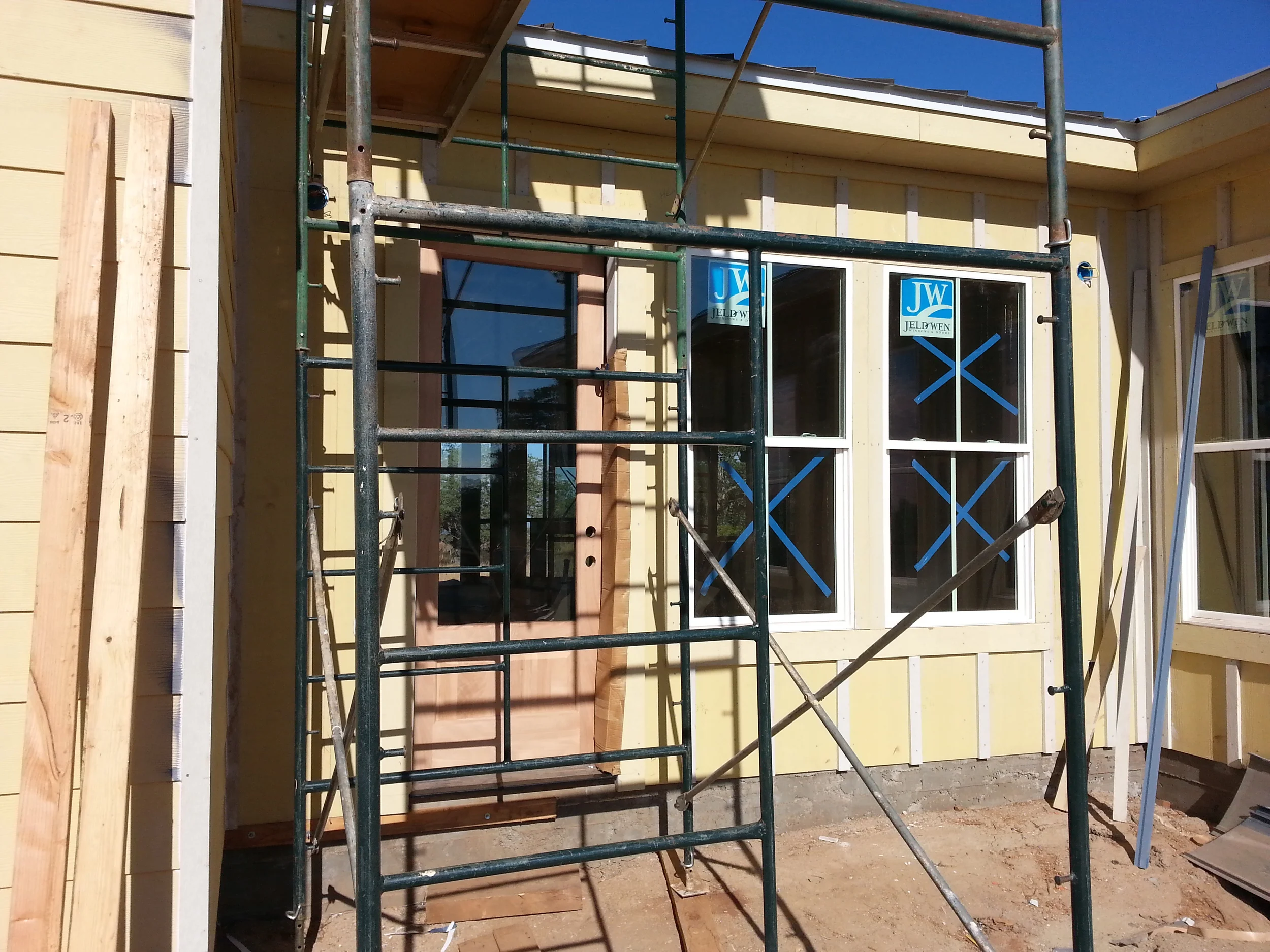 Not the best picture but you can get a feel for what the entry way will look like. I really like that the window height and the front door glass match. totally lucky! :)