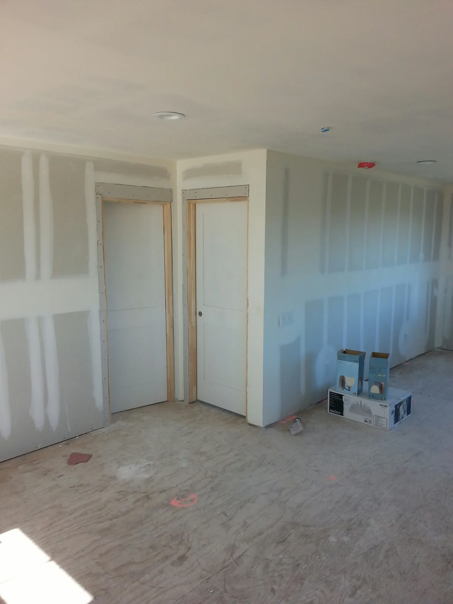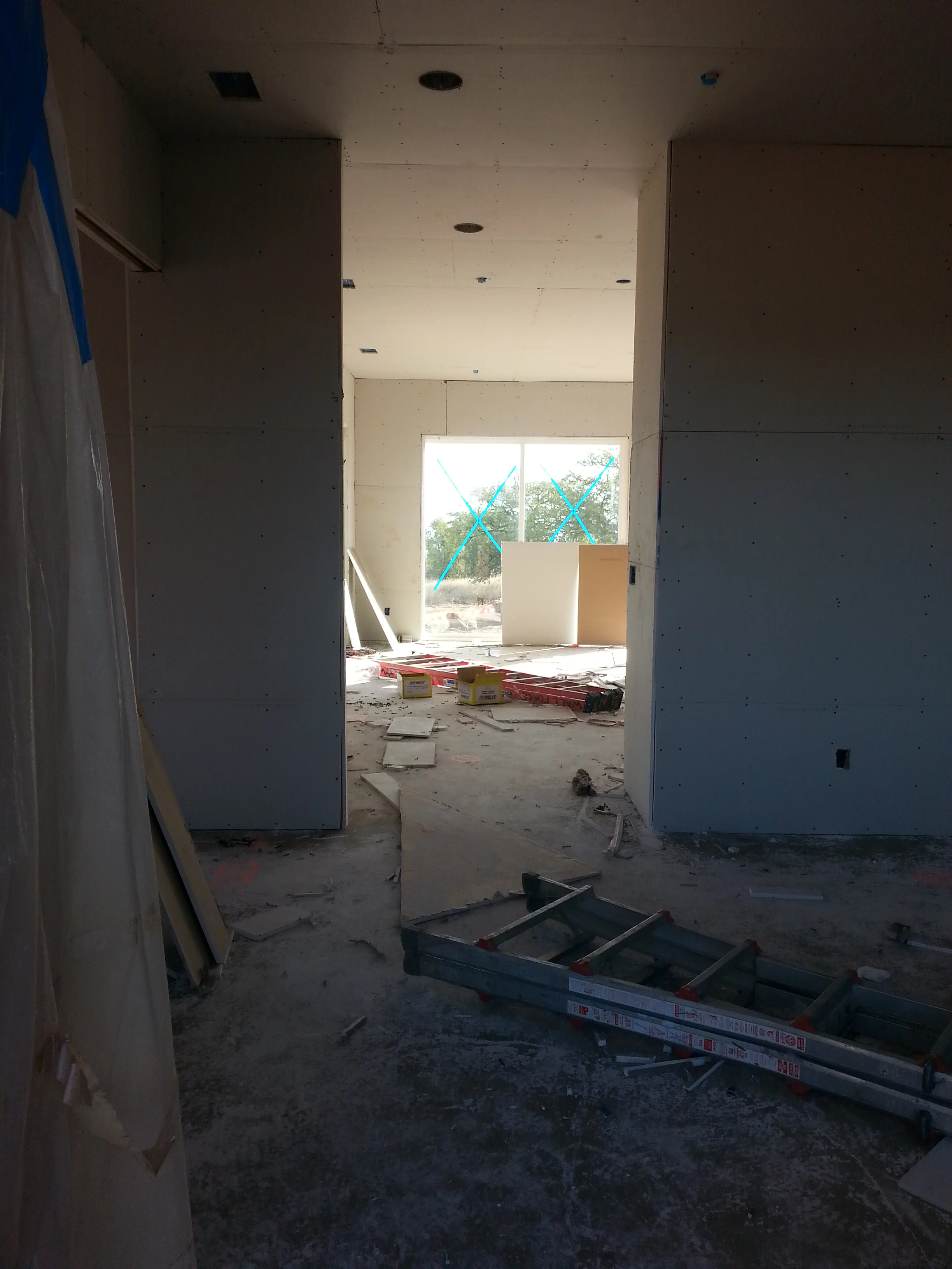 The drywall was all delivered yesterday but the installers couldn't find the house so they decided to go home?! James our drywall contractor was a bit embarrassed and brought six installers with him this morning. I had to go out to the house before school today because I had thought I could install the final two pocket doors on Saturday, but James said they will probably be done hanging drywall by the end of the day Friday! I took tons of pics of the walls and the electrical yesterday in the hope that we wont have to use them to find electrical shorts after Edison hooks up the power. :)