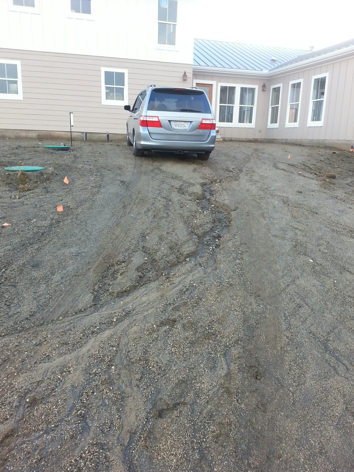 Not super deep but the tires started to spin and it didn't look like it was getting better. Minivans are for asphalt anyway! :) Maybe time for a 4x4 truck?! or just some asphalt for a driveway! The asphalt is cheaper!